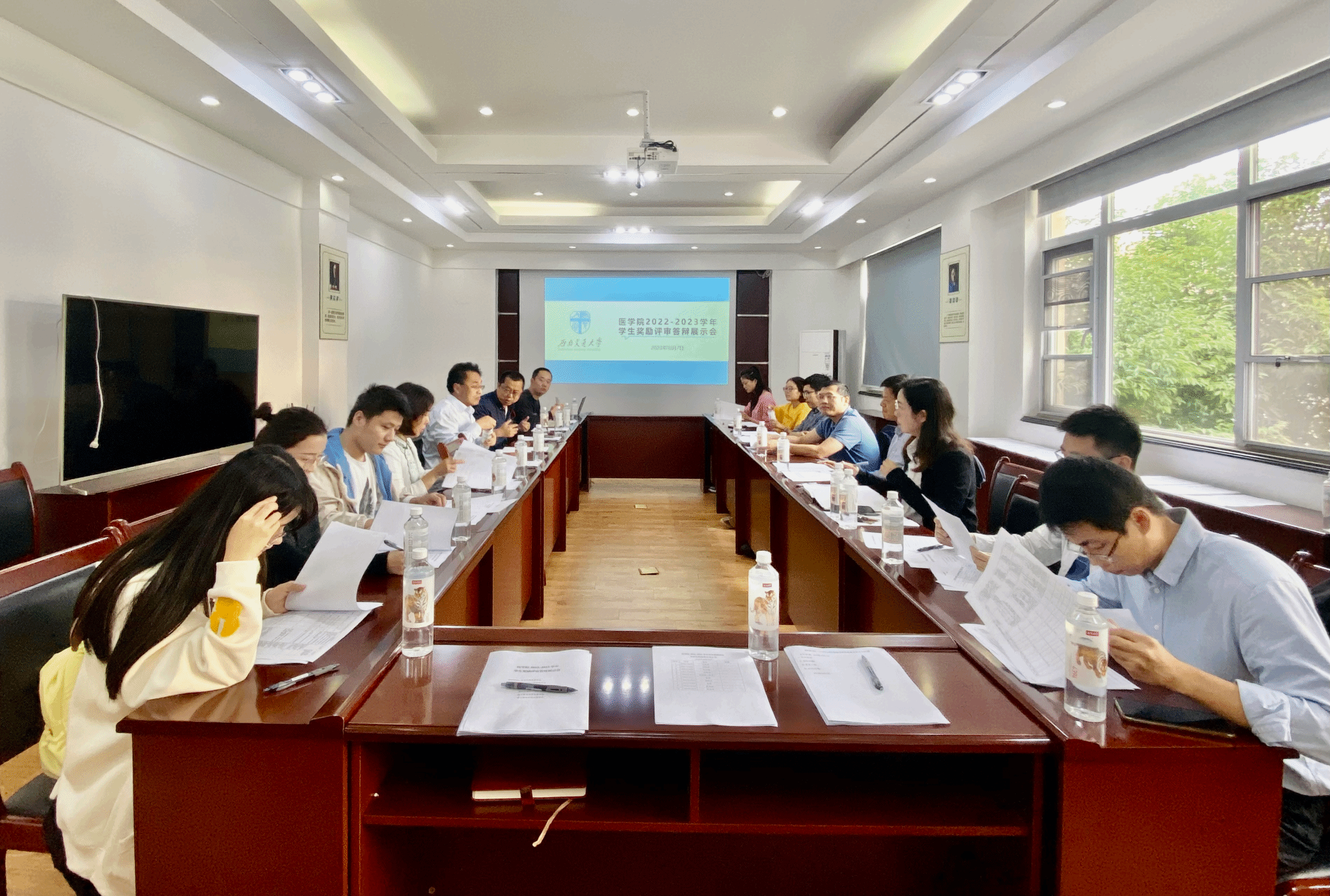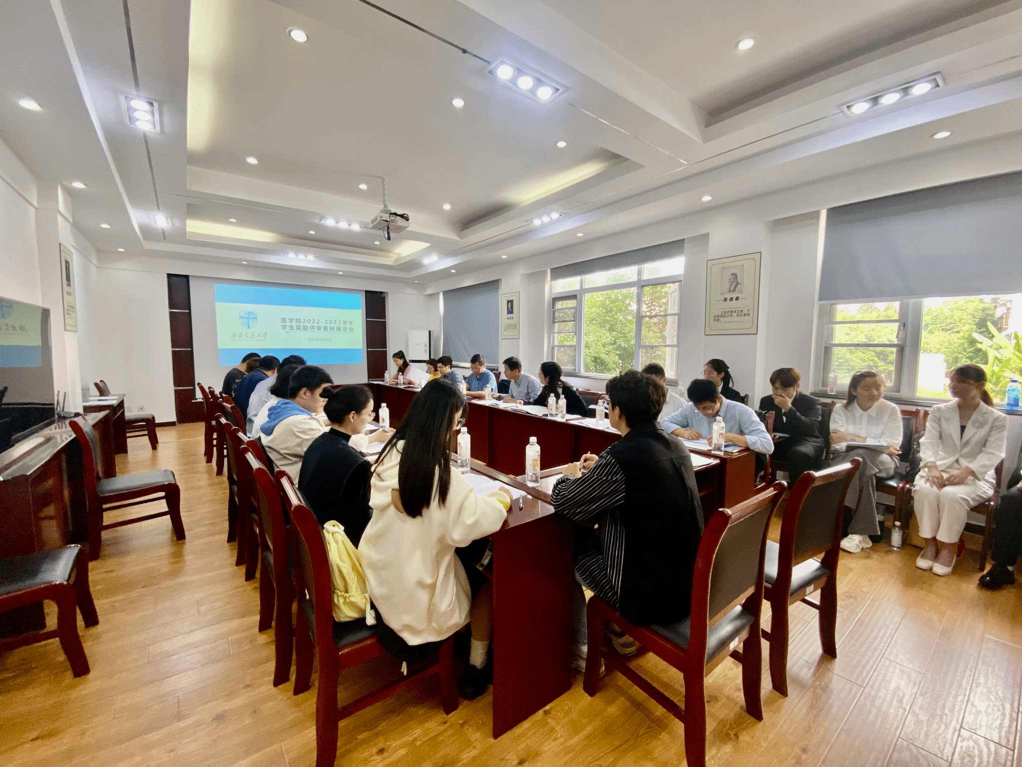 学生奖励评审工作小组成员共15人担任了评审工作,评审会由党委副书记于楠主持。