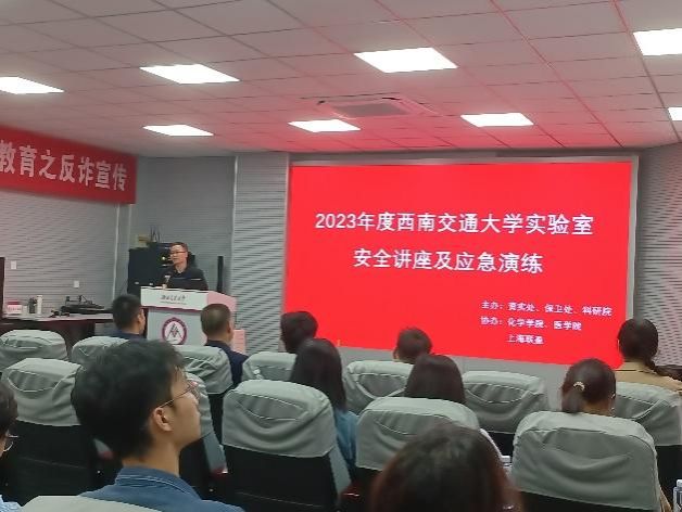 、化学学院、上海联盈协办。2023级研究生新生参与了演练,资产与实验管理处、安稳办、保卫处、科研院及化学学院、多瑙影院