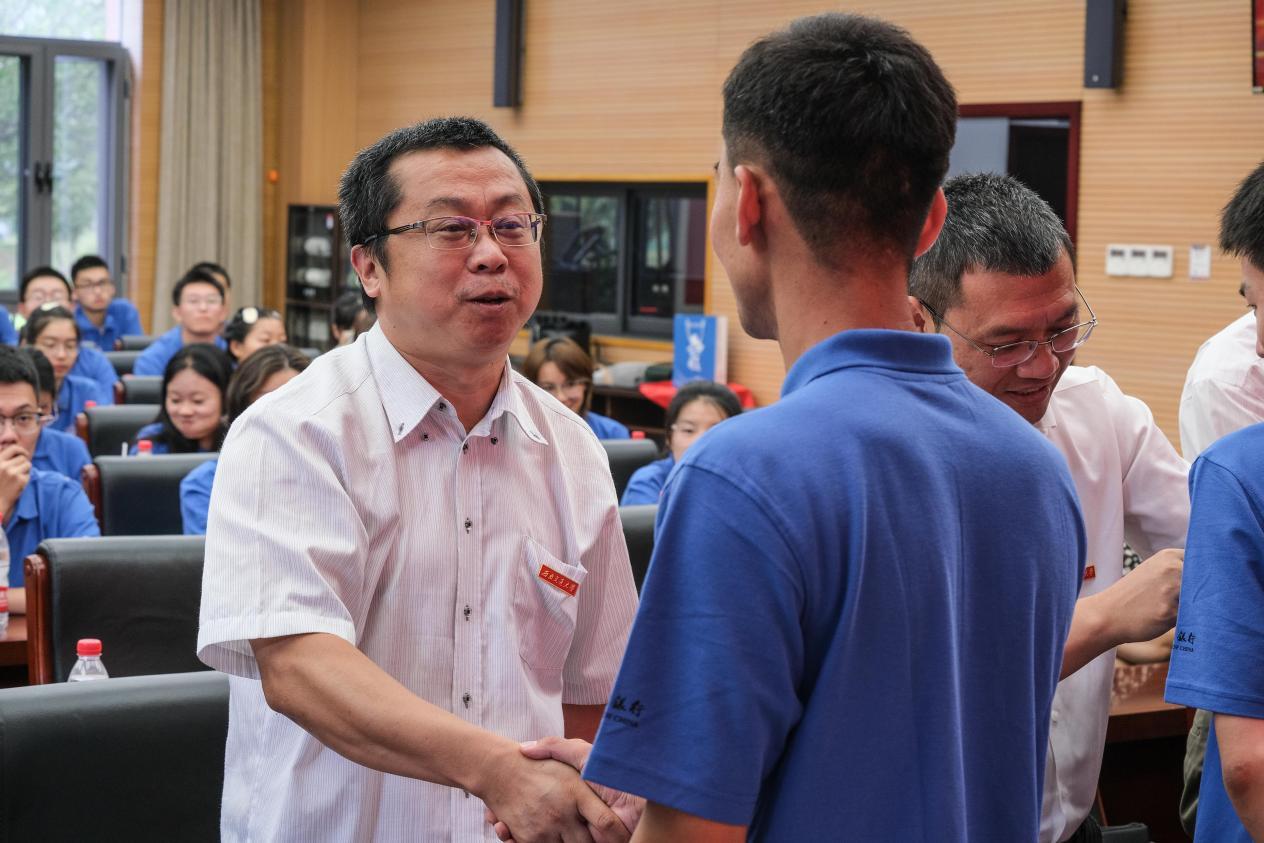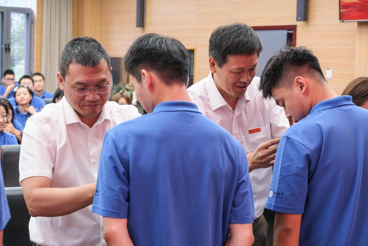 院领导为2023级本科生代表佩戴校徽