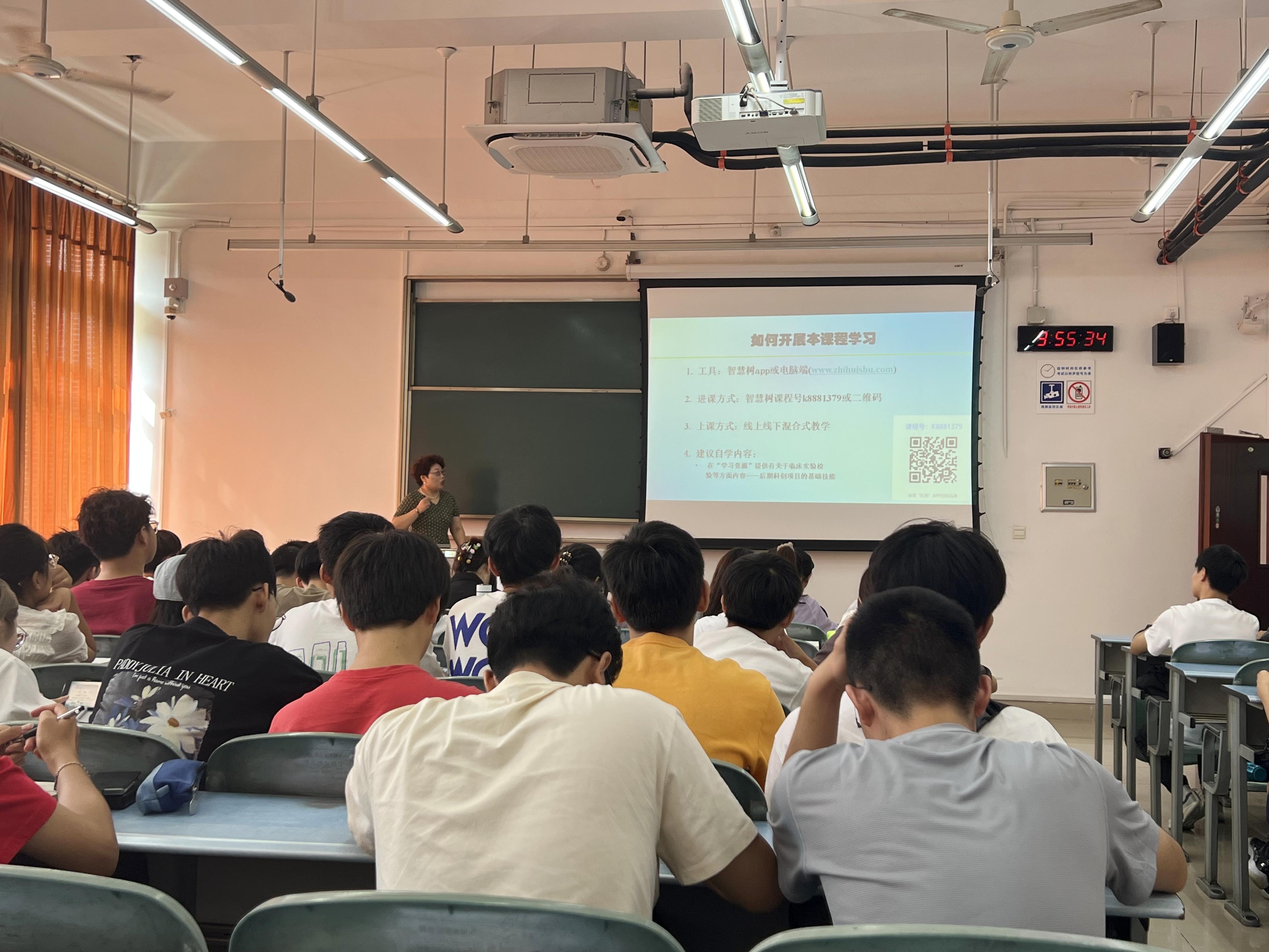 临床医学研究生第一课《循证医学》,由附属医院成都市第三人民医院神经内科主任柳华老师主讲。9月4日早上7:40,柳华老师就已到达教室,调试好了教学设备,等待同学们的到来。40余名临床医学研究生陆续到达教室,整间教室座无虚席。