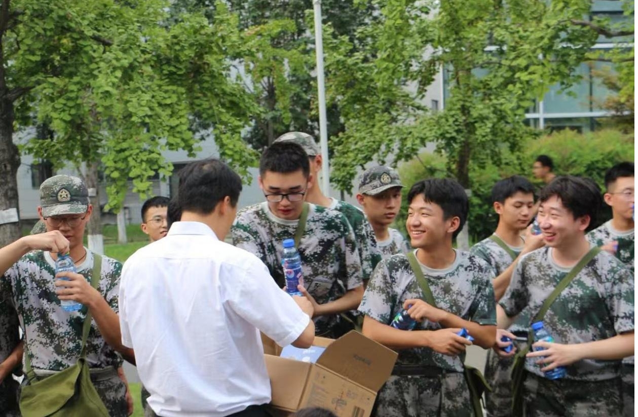接着,院领导们为新生们发放了清凉的饮品作为慰问,现场气氛热烈、欢乐和谐。最后在李锦红书记的带领下,大家一起合唱了一首《团结就是力量》,在朗朗的歌声中,慰问接近尾声。