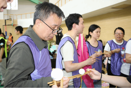 整个趣味运动环节包括了齐心协力、穿越火线、你来我往、一击命中、力拔山兮五个小游戏,激动人心的比赛在师生们的欢呼声中展开。