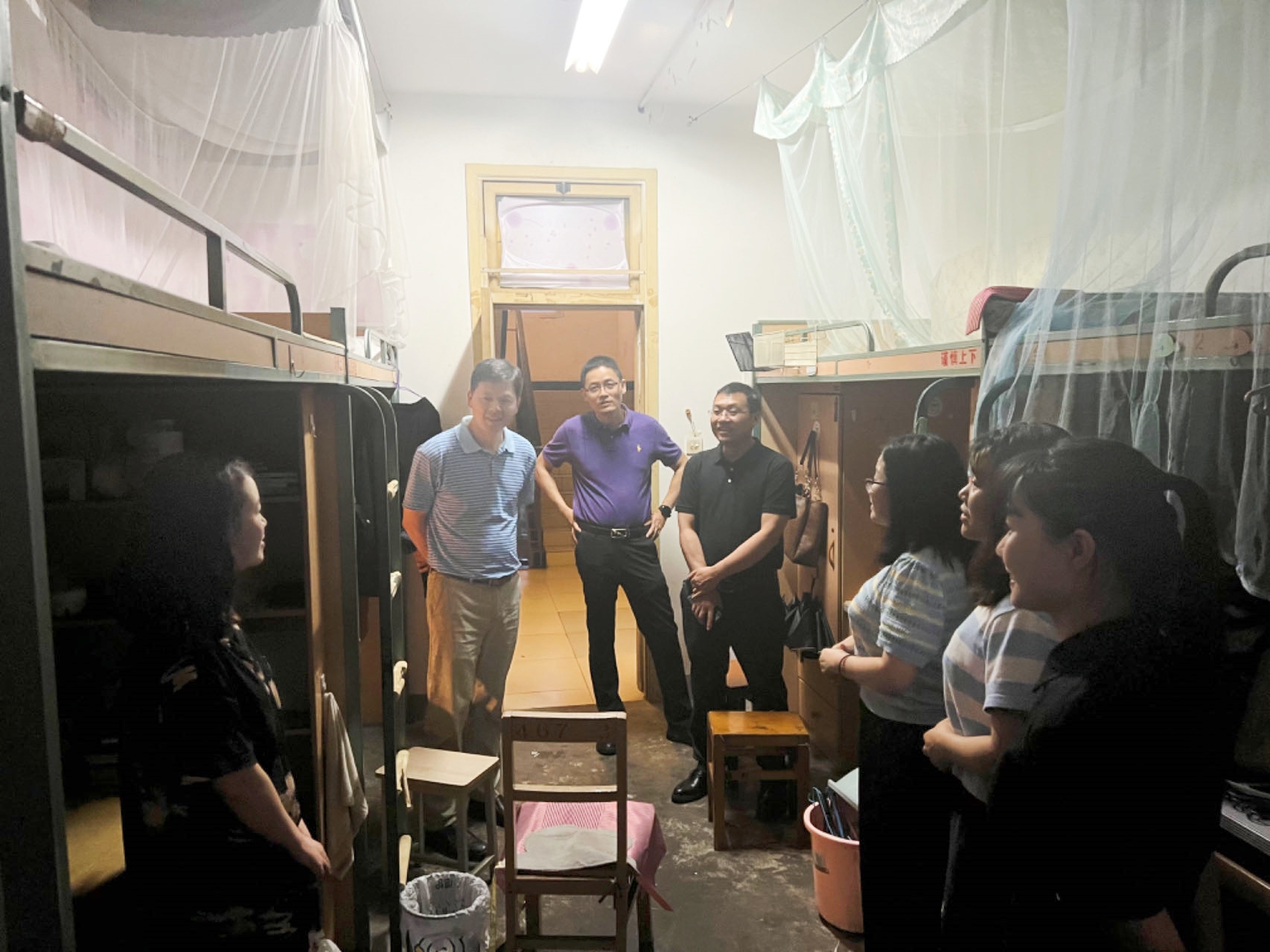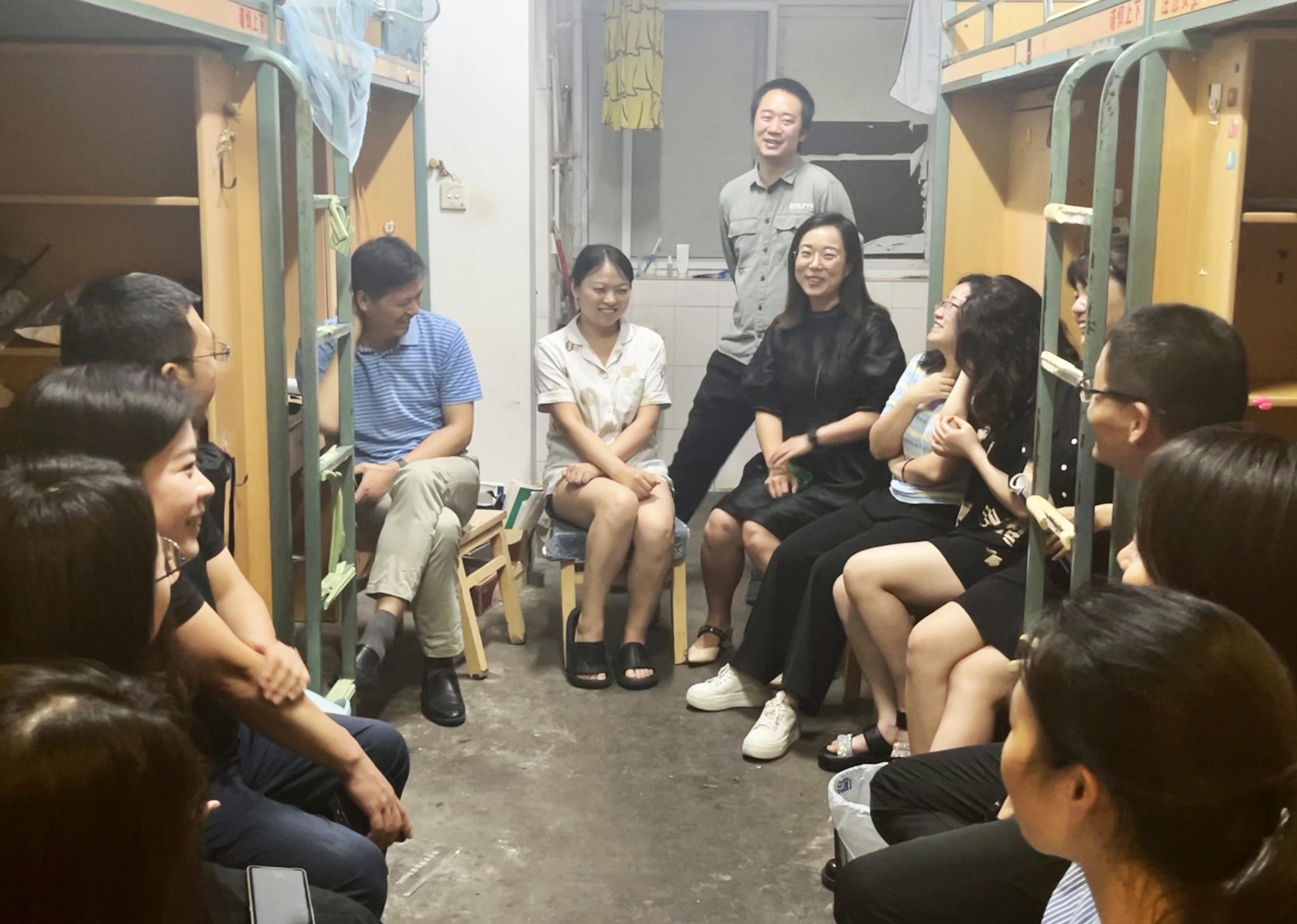 毕业班女生宿舍。周绍兵院长、李锦红书记关切地询问了每一位毕业生的就业情况,她们中有留在三医院、六医院等继续规培的、有考博升学的、有正在考公的,学院领导对毕业生们有清晰的职业规划和好的毕业出路表示非常欣慰。李毅副部长与同学们也进行了亲切交流,对多瑙影院