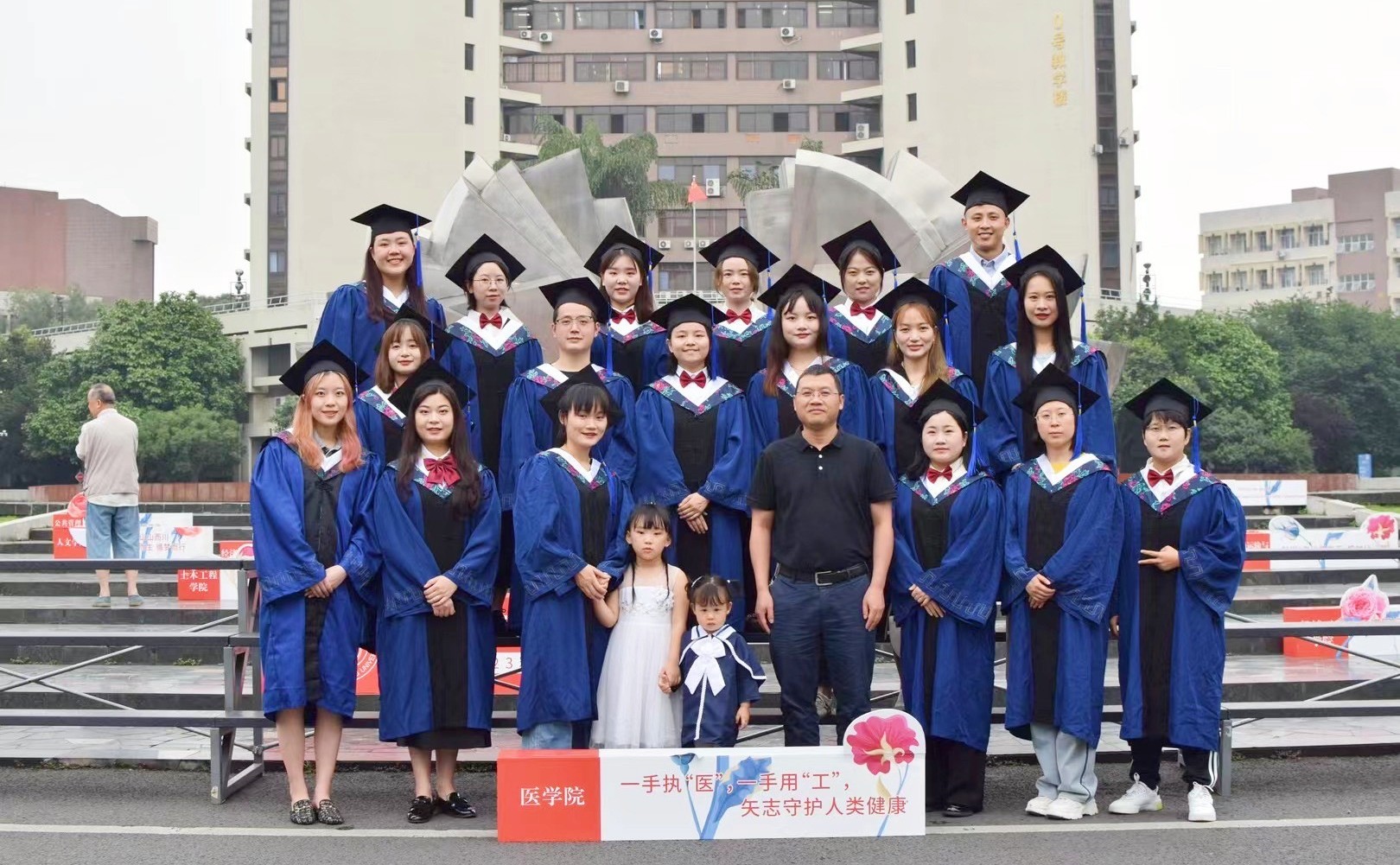 我们之中,有人执“医”,有人用“工”,但我们都有着同样的理想——守护人类生命健康。亲爱的你们啊,今天挥手作别,明天我们将担起责任与使命,共赴祖国卫生健康事业的广阔天地。