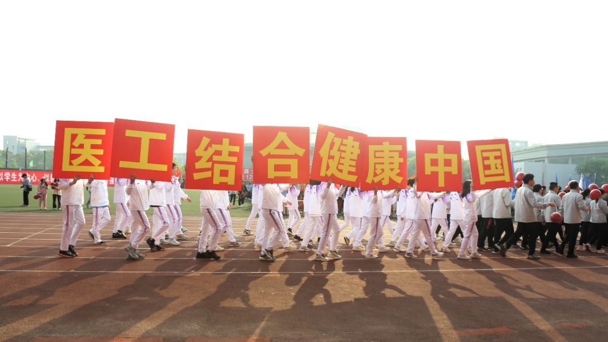 和附属医院方针,高举三面旗帜、迈着坚定整齐的步伐步入赛场,“临床生医,开拓创新,医工结合,健康中国”,铿锵的口号在回响在整个赛场。方阵走在红色的跑道上,更是走在建设具有医工结合特色多瑙影院