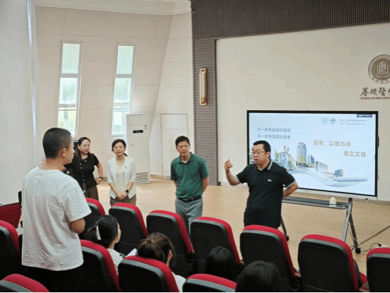 党委书记刘莉、副书记王繁、学工办负责人张飞,医学中心副主任、临床多瑙影院