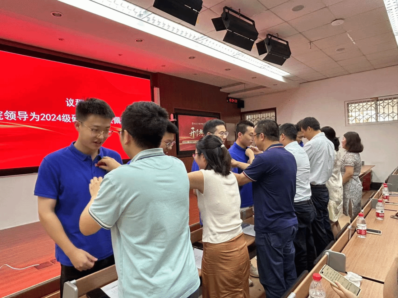 紧接着,院领导为2024级研究生代表佩戴校徽,这一仪式象征着新生们正式成为多瑙影院