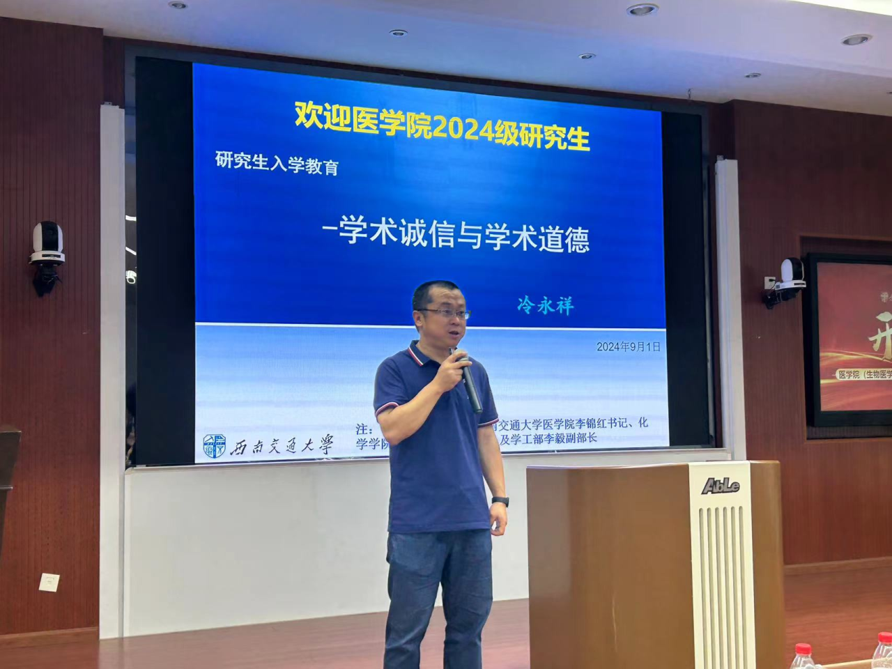 校歌》,歌声中充满了对母校的热爱和对未来的憧憬。随后,冷永祥副院长为新生们讲授了入学教育第一课《学术诚信与道德》,他深入浅出地阐述了学术诚信的重要性,以及如何在学术研究中坚守道德底线。
