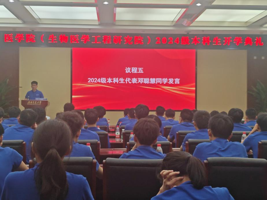 2024级研究生代表何思汝同学的发言同样令人印象深刻。她以新生的视角,表达了对即将开始的研究生生活的期待和对医学事业的热爱。她的话语中透露出坚定的信念和对未来的无限憧憬,展现了新一代学子的风采。