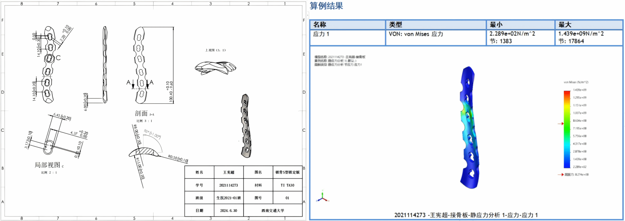 进行接骨板Solidworks三维设计与力学分析