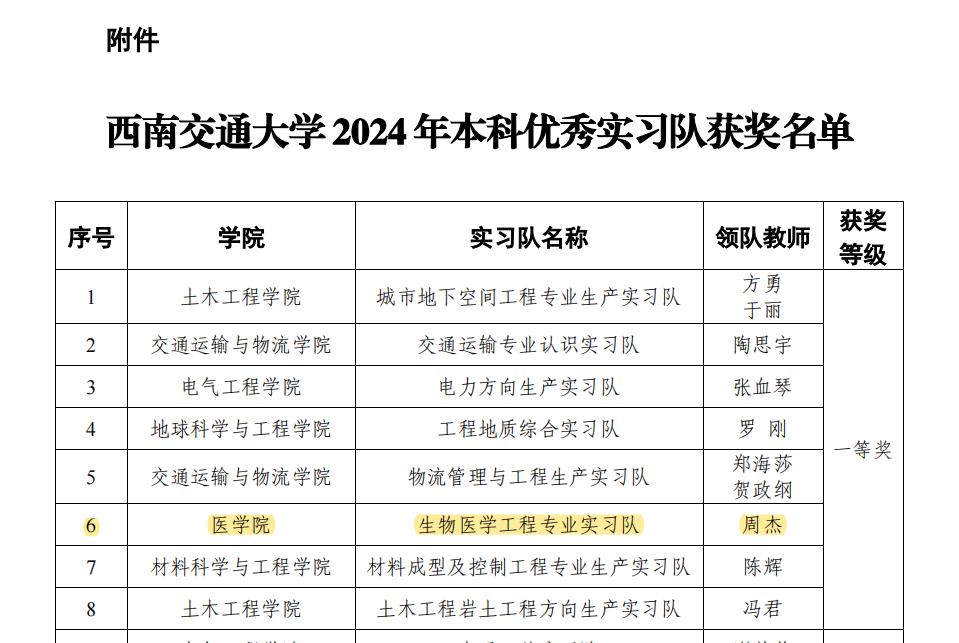 周杰、常向荣和向韬老师带队的“生物医学工程专业实习队”在本次学校优秀实习队评选活动中荣获一等奖。