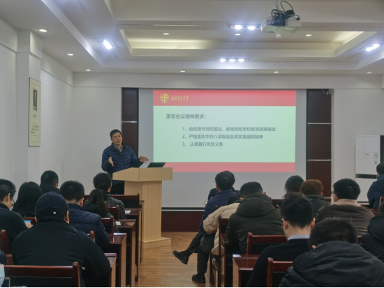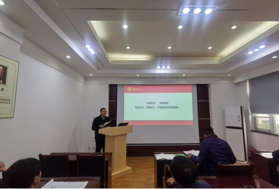 学院纪检委员芦莹华同志通报了教育部全面从严治党会议精神。