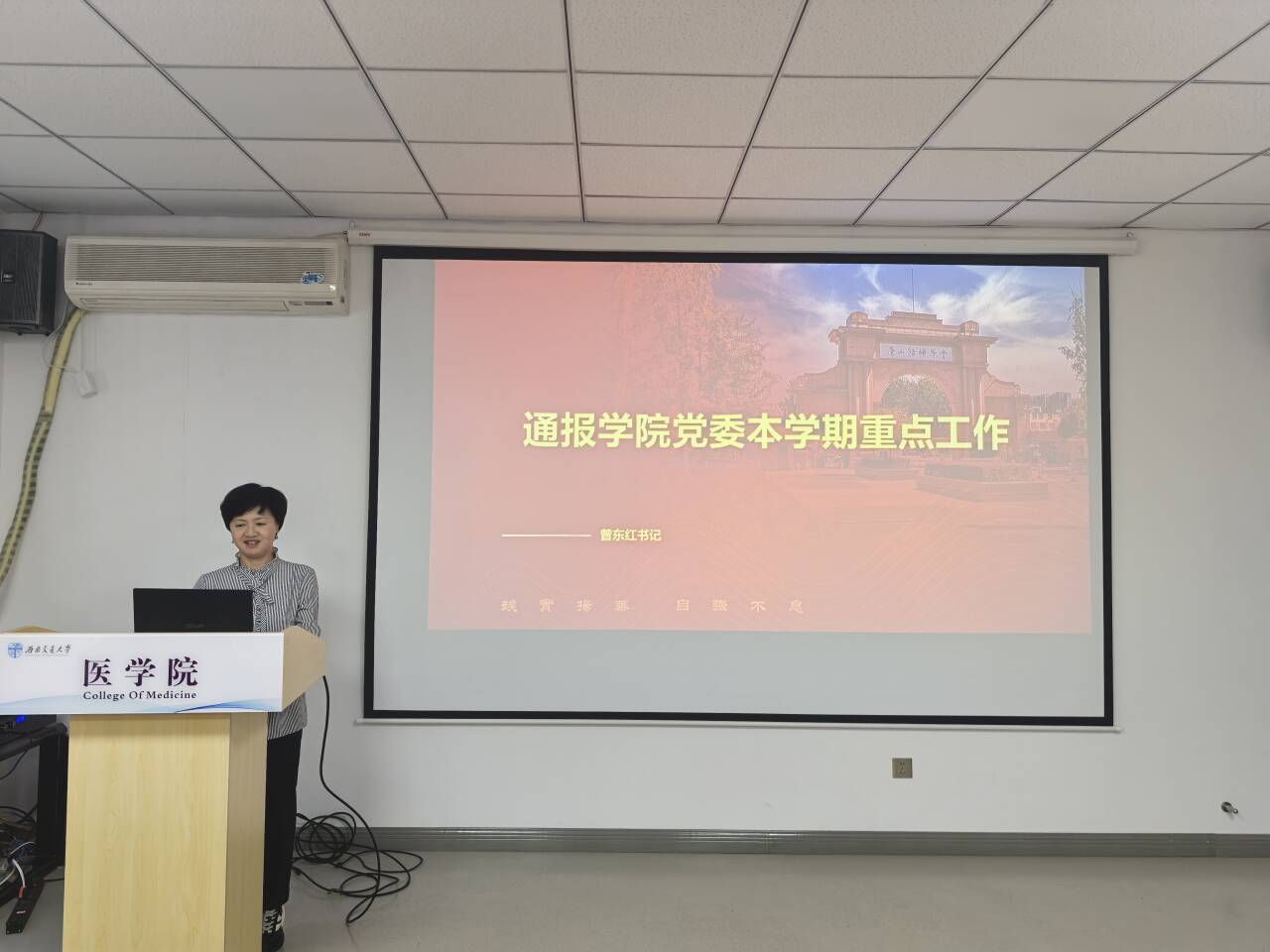 党委副书记于楠主持大会第二阶段,学院领导班子从党建引领、战略规划、人才培养、国际合作等多维度展开工作部署:党委书记曾东红锚定本学期党建重点任务,为党建工作指明方向;院长周绍兵系统解读2025年发展规划与目标任务书,明确学院发展目标;副院长冷永祥聚焦人才培养与国际化建设,各分管负责人同步通报绩效分配、实验室安全、本科教学等重点工作,为全年工作锚定坐标。