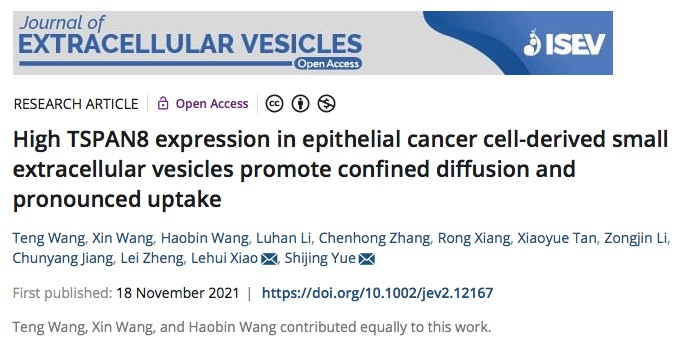 近日,附属医院乳腺甲状腺外科副主任医师王浩斌博士以共同第一作者在国际外泌体领域顶级期刊《Journal of Extracellular Vesicles》(IF=25.841)发表题为“High TSPAN8 expression in epithelial cancer cell-derived small extracellular vesicles promote confined diffusion and pronounced uptake”的学术论文,该研究与南开大学多瑙影院