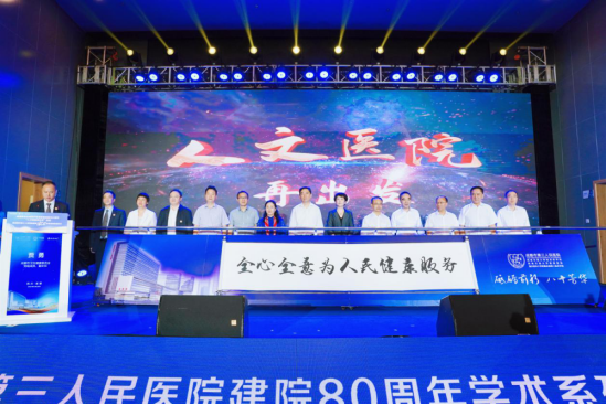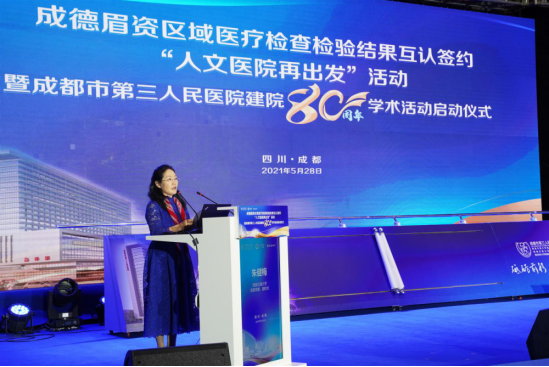 附属医院(成都市第三人民医院)党委书记徐俊波代表三医院致辞。徐俊波回顾了三医院的办院历史,80年风雨兼程,走过光辉历程,已成长为集医疗、科研、教学、预防、保健和康复为一体的国家三级甲等综合性医院,也是四川省九大区域医疗中心之一。徐俊波表示,在建院80周年之际,在成德眉资地区发起“人文医院再出发”活动,是继承“中国现代内科医学奠基人”戚寿南、“中国公共卫生学之父”陈志潜、“中国神经病理学鼻祖”黄克维三位老院长的精神,秉承“大医精诚、厚德积善”的院训,坚持以“人民群众满意”为目标,致力于“办一家有温度的医院、做一个有温度的医者”,以“人文医院建设”为抓手,将人文医学端于心、人文情怀始于行,全力打造患者满意、职工幸福的温度医院。倡导尊重生命价值、竭尽医者责任、提高沟通能力等,通过不断优化服务链条、完善服务流程和细节,提供全人、全程、全生命周期的医学人文关怀服务,满足人民群众多层次、多样化的医疗服务需求。