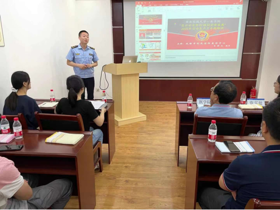 成都市利民消防宣传中心李斯杰教官开展了实验室消防安全培训,通过一个个鲜活的事例,向师生们列举了由于消防意识淡薄而造成的严重火灾事故。李教官以现场教学的方式演示了灭火器、防火毯、防毒面具等消防器材的使用,让在座师生进一步掌握了火灾自救和救灾的方法。