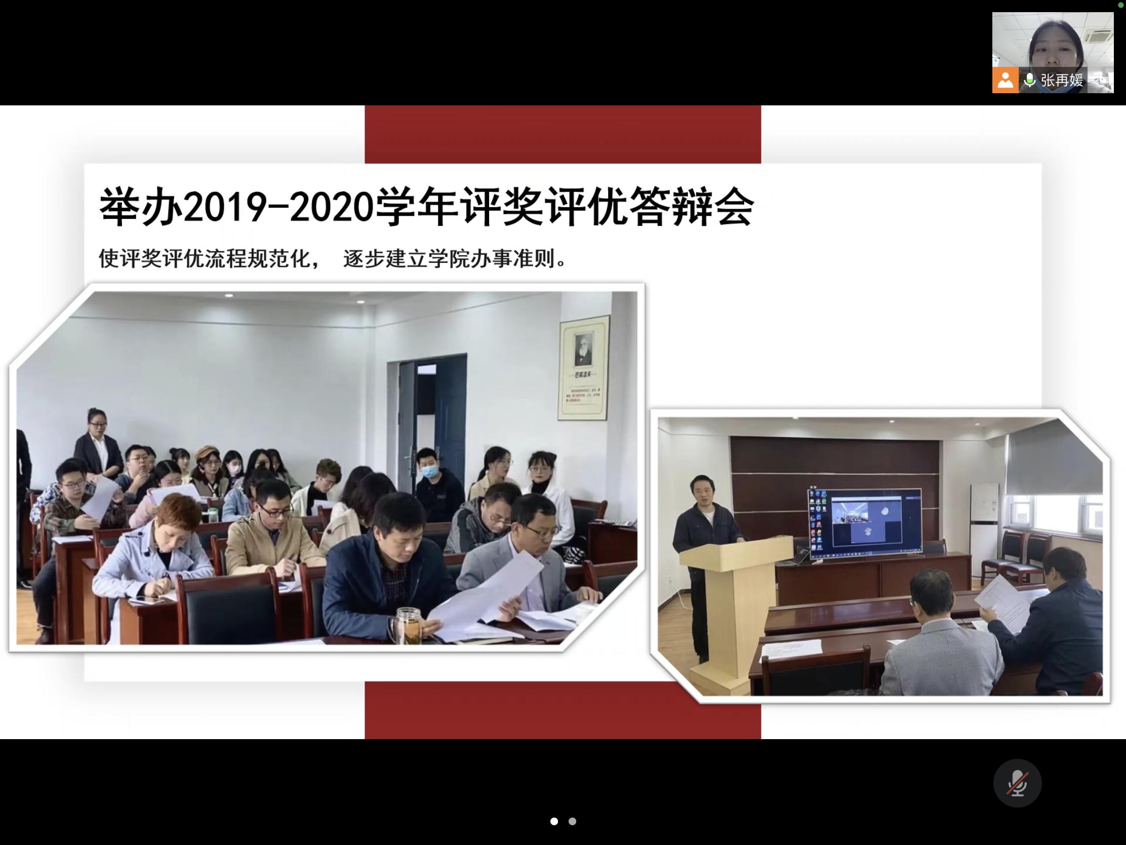 会上,张再媛对本学期的工作成果进行了回顾与总结。研会组织并完成了2020年新生入学迎新、新生迎新仪式及导师见面会等工作,使新入学的同学迅速融入多瑙影院