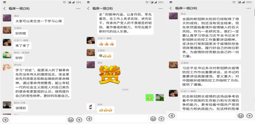 临床一班同学积极了解四史,感受抗疫精神,坚定为祖国医药卫生事业做出贡献的信念,向逆行者学习,于2020年9月18日开展四史学习及新冠肺炎疫情防控知识学习教育活动。
