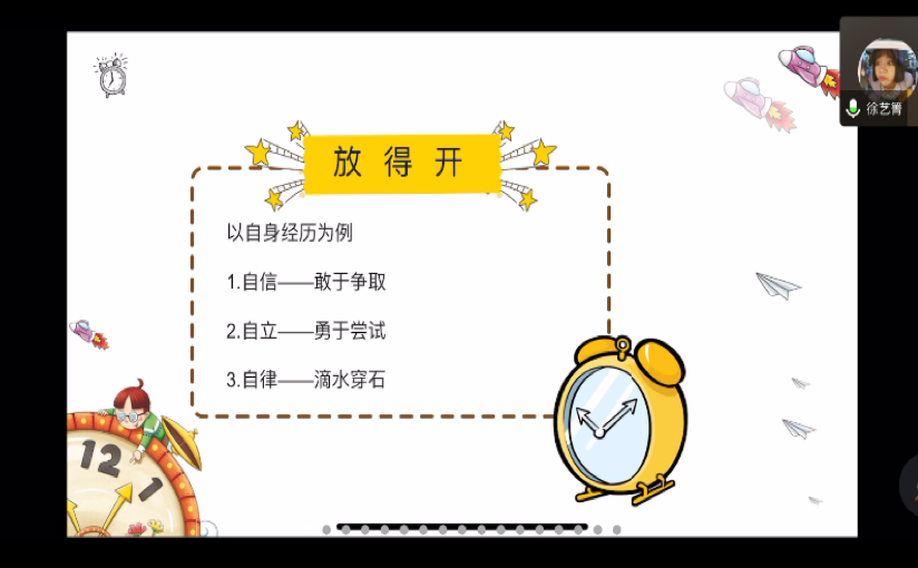 会议开始,徐艺箐首先提出如何管理研究生生涯的建议:要沉得住,放得开,大胆做。沉得住意味着要将学习放在首位,也意味着要学会借力,即结合自身能力选择课题,适当寻求老师和师长的帮助,不排除借助外包公司来提高效率;放得开是指我们要做到自信、自立、自律。自信是要敢于在评奖评优中争取,为自己的简历增加一抹亮色;自立意味着要勇于尝试,充实自己,学习新的知识,接触不同的人群;自律则是要做到滴水穿石,坚信一件事只要认真做总有回报;大胆做代表着踏出舒适圈,面对自己的专业方向,要博学之,审问之,慎思之,明辨之,笃行之。相信天行健,君子以自强不息;地势坤,君子以厚德载物。徐艺箐满怀力量的鼓励大家,并期待着多瑙影院
