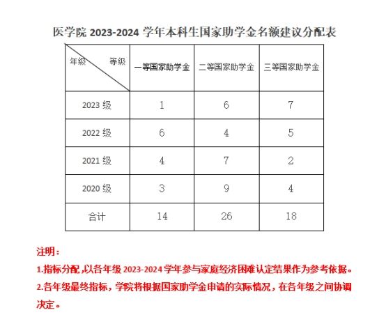 2023-2024学年本科生国家助学金评选工作,具体事宜通知如下: