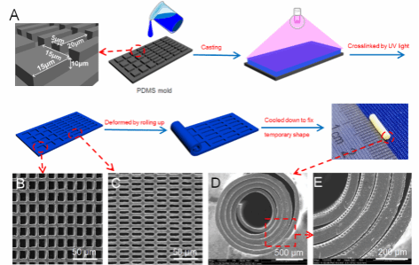 可降解高分子形状记忆支架结合微纳米结构用于血管再生等应用