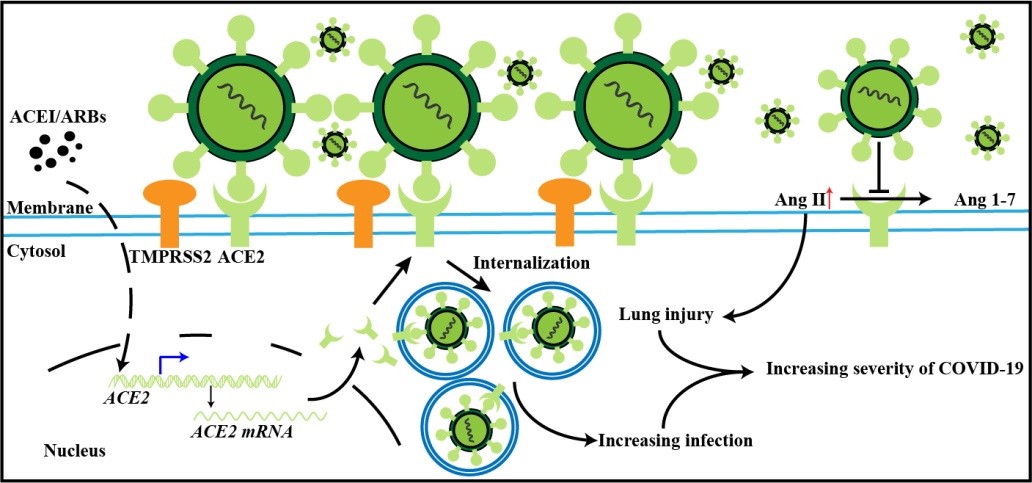 该研究发现吸烟人群ACE2表达量升高,推测长时间吸烟可能是COVID-19的一个风险因素。同时,ACE2不仅能作为SARS-CoV进入细胞的受体,而且参与了病毒感染后的调控机制,包括免疫反应、细胞因子分泌和病毒的复制。同时,通过构建蛋白质互作网络筛选到了参与免疫反应和病毒复制的关键基因。最后,探讨了ACE抑制剂和阻断剂对COVID-19潜在的影响。