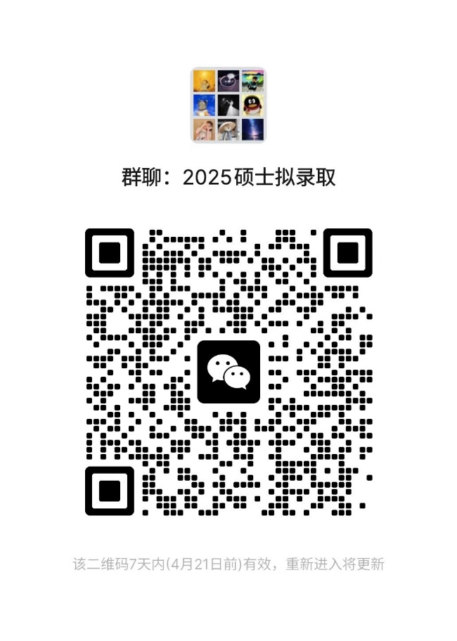 为做好拟录取考生的咨询答疑,以及接下来的导师双选工作、邮寄通知书等工作,学院已建好拟录取微信群,请各位拟录取考生凭“25专业(临床/生医/材化)-姓名”申请加群。