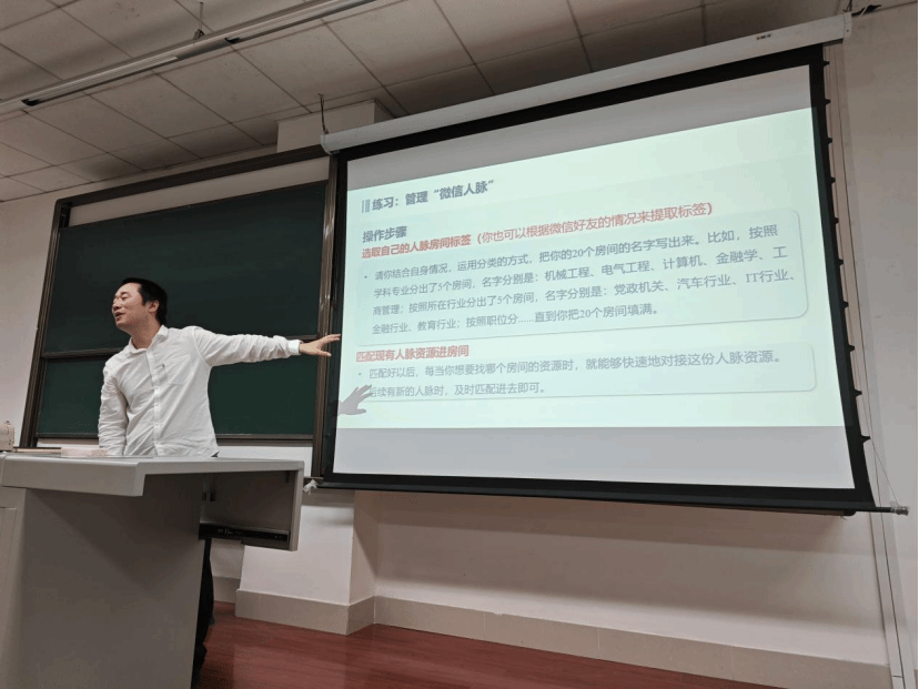 此外,胡老师还分享了建立和拓展求职网络的具体方法。他建议学生们通过参加行业活动、实习实训、社交媒体等多种途径来扩大自己的人脉圈,并学会如何与他人建立有效的联系和沟通。同时,他也强调了诚信和真诚在人际交往中的重要性,并鼓励学生们在求职过程中保持真实和坦诚。