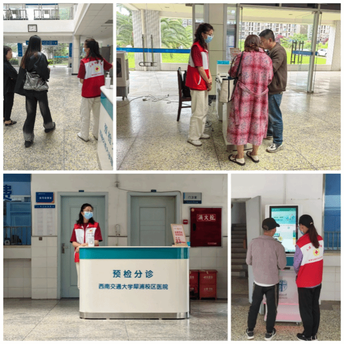 活动期间,志愿者们积极投入导诊工作,在校医院内热情引导患者找到相应科室,协调就诊过程,确保就医流程的顺畅,使患者能够得到及时有效的医疗服务。同时,他们还协助就诊师生熟悉自助机器挂号、缴费流程,提升就医效率。
