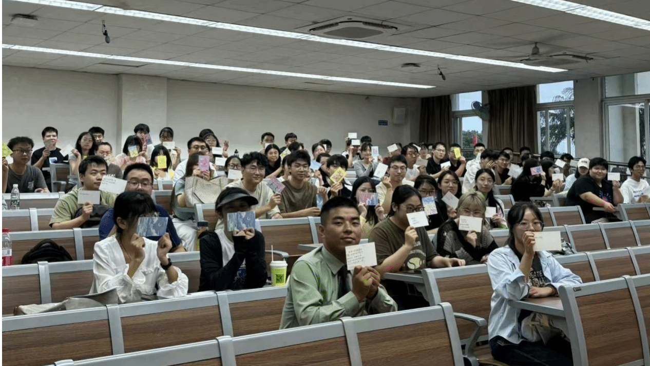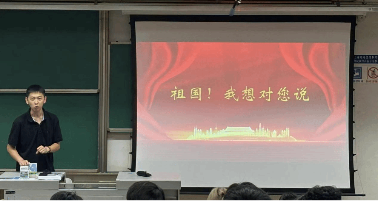 在方洪奎的精彩分享之后,辅导员韩鹏飞号召同学们以“祖国,我想对您说”为主题,书写自己对祖国的美好祝愿。