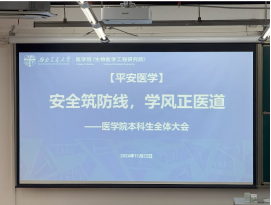 召开了本学期首次本科生全员大会,作为“平安医学季”活动的一部分,旨在提升学生的安全意识和校园安全教育。