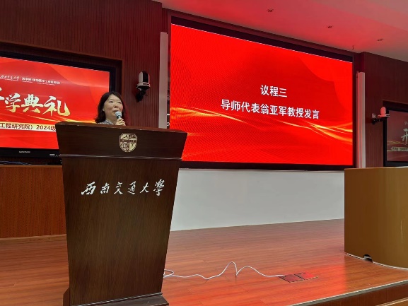 导师代表翁亚军教授以其丰富的教学经验和深厚的学术造诣,向新生们传授了宝贵的学术经验和人生智慧。同时,鼓励同学们要坚定理想信念,保持初心,以实际行动践行医学使命。