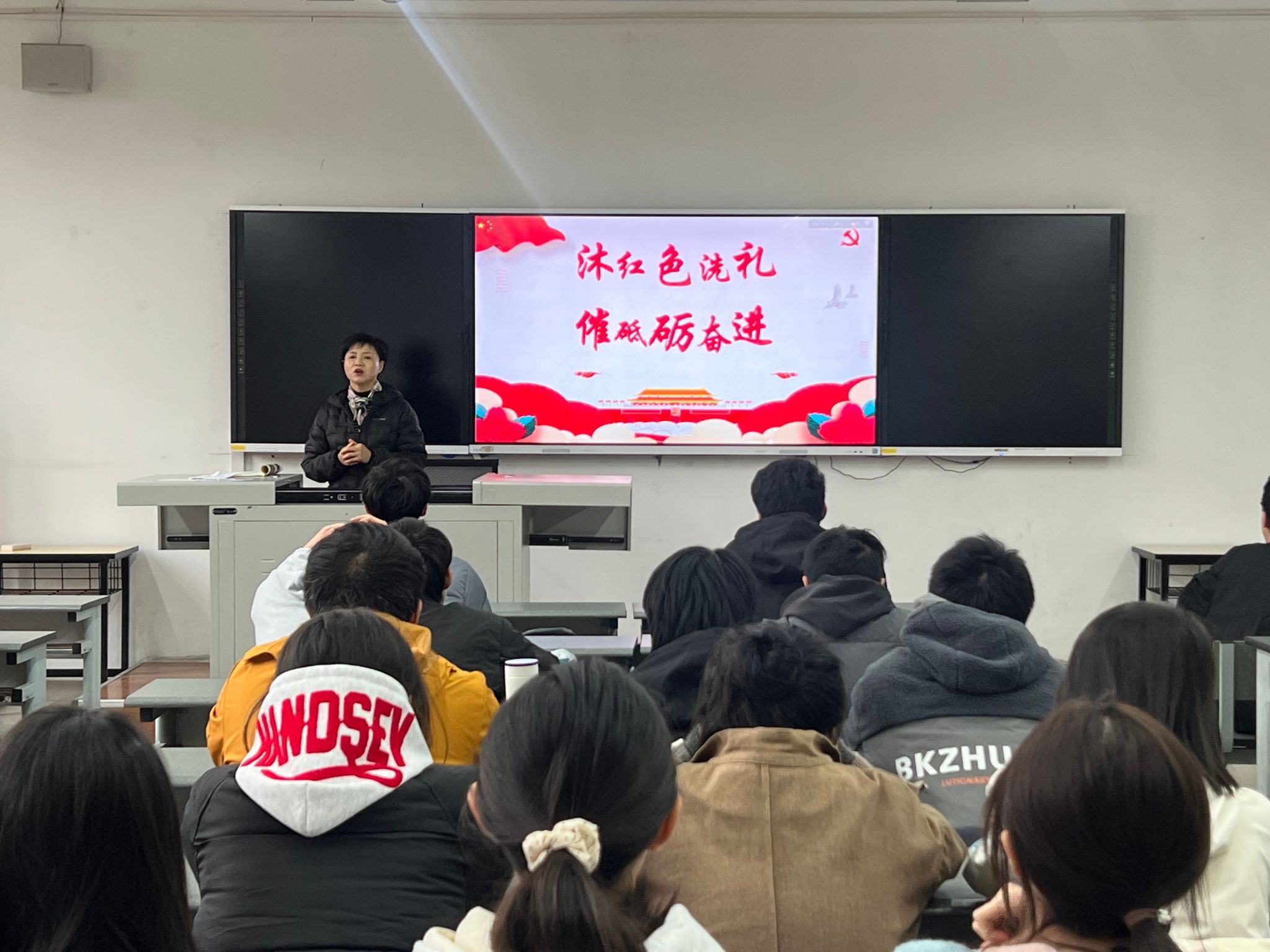 党委书记曾东红为新生开展名为“沐红色洗礼,催砥砺奋进”的入党启蒙教育,为新生们开启了一扇了解党的光辉历程、感悟党的伟大精神的大门。曾书记以中国共产党的百年征程为主线,通过一个个鲜活的历史事件、一位位可歌可泣的英雄人物,带领新生们穿越时空,回顾了党从诞生到发展壮大的波澜壮阔的历史画卷。曾书记紧密结合多瑙影院