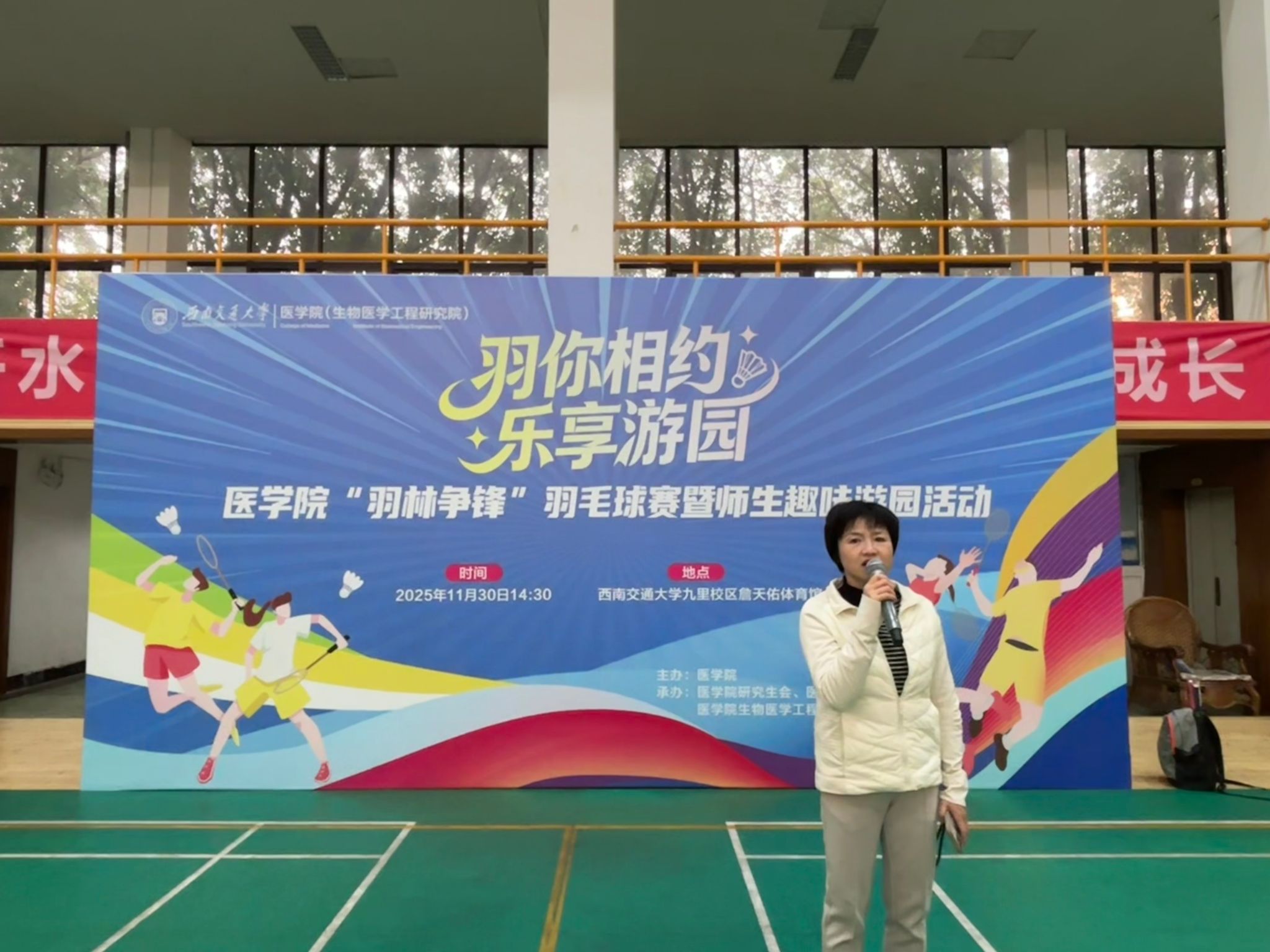 主办,学院研究生会、工会、生物医学工程系教工党支部及各学生党支部联合组织协作的“羽”你相约·乐享游园文化体育交流活动在此正式拉开帷幕。院党委书记曾东红、副院长冷永祥、党委副书记于楠、部分教师代表及全体辅导员出席活动,活动由院团委书记胡豪主持。本次活动吸引了学院导师、机关教师、学生及教职工子女等众多参与者,打破年龄与身份界限,共赴一场集竞技、趣味与文化于一体的文体盛会。