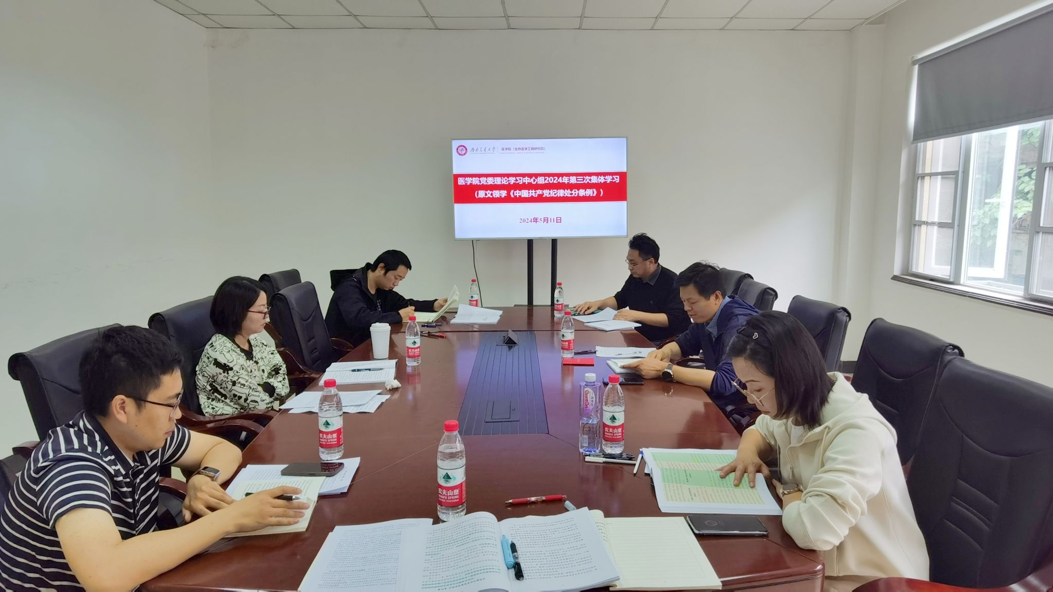 与会同志分别原原本本、逐章逐条领学了《中国共产党纪律处分条例》。期间,于楠同志扩展介绍了我校关于课时费、科研咨询费等的相关标准;李锦红就部分条目针对性进行了案例补充。