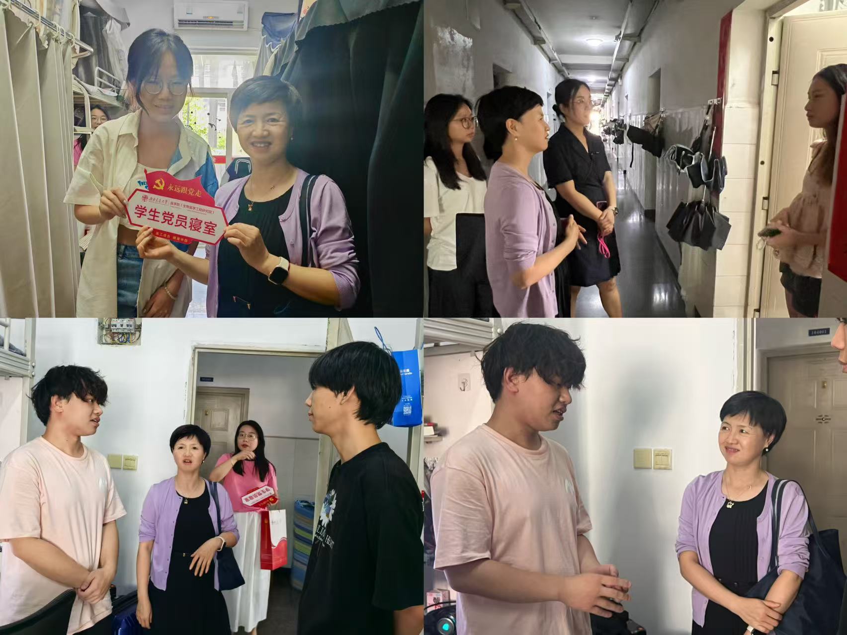 活动伊始,学院领导与辅导员们一同前往各学生党员宿舍。每到一间宿舍,曾东红书记都亲自将“党员宿舍”的牌匾郑重地交到学生党员手上,由学生党员亲手挂在宿舍门上。这一小小的牌匾,不仅是一份荣誉的象征,更是一份沉甸甸的责任。它时刻提醒着宿舍内的学生党员,要以更高的标准严格要求自己,在学习、生活和工作中发挥模范带头作用。