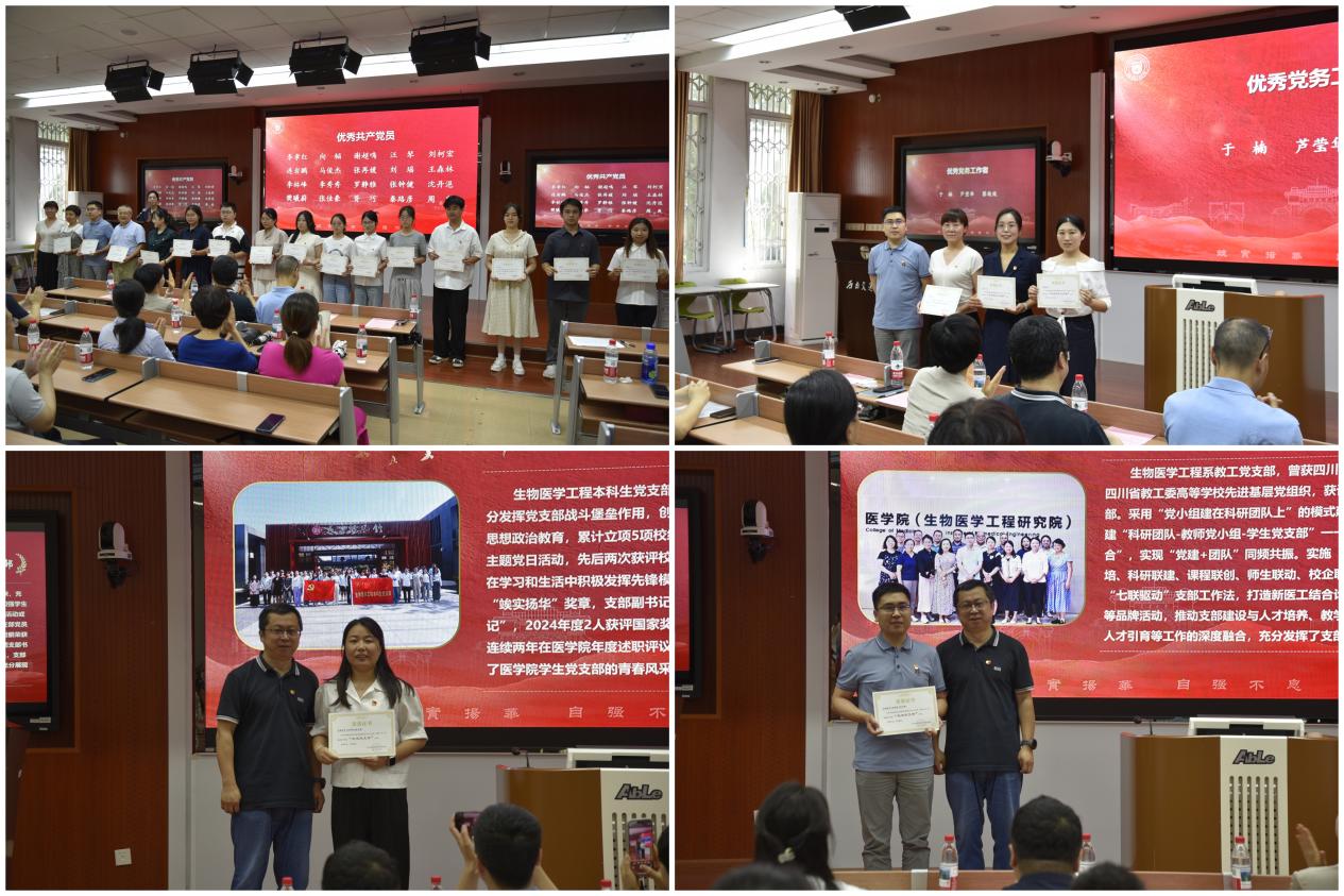 大会第一阶段,举行医学院党委“两优一先”表彰仪式。党委书记曾东红宣读《关于表彰2023-2025年多瑙影院 优秀共产党员、优秀党务工作者和先进党支部的决定》,对在教学、科研、管理及党务工作中表现优异的党员和党支部进行表彰李孝红等20名同志被授予“优秀共产党员”称号,于楠、芦莹华、蔡俊俊3名同志被授予“优秀党务工作者”称号,生物医学工程本科生党支部被授予院级“先进党支部”称号。同时,生物医学工程系教工党支部在校级评选中脱颖而出,被授予“多瑙影院 先进基层党组织”称号。