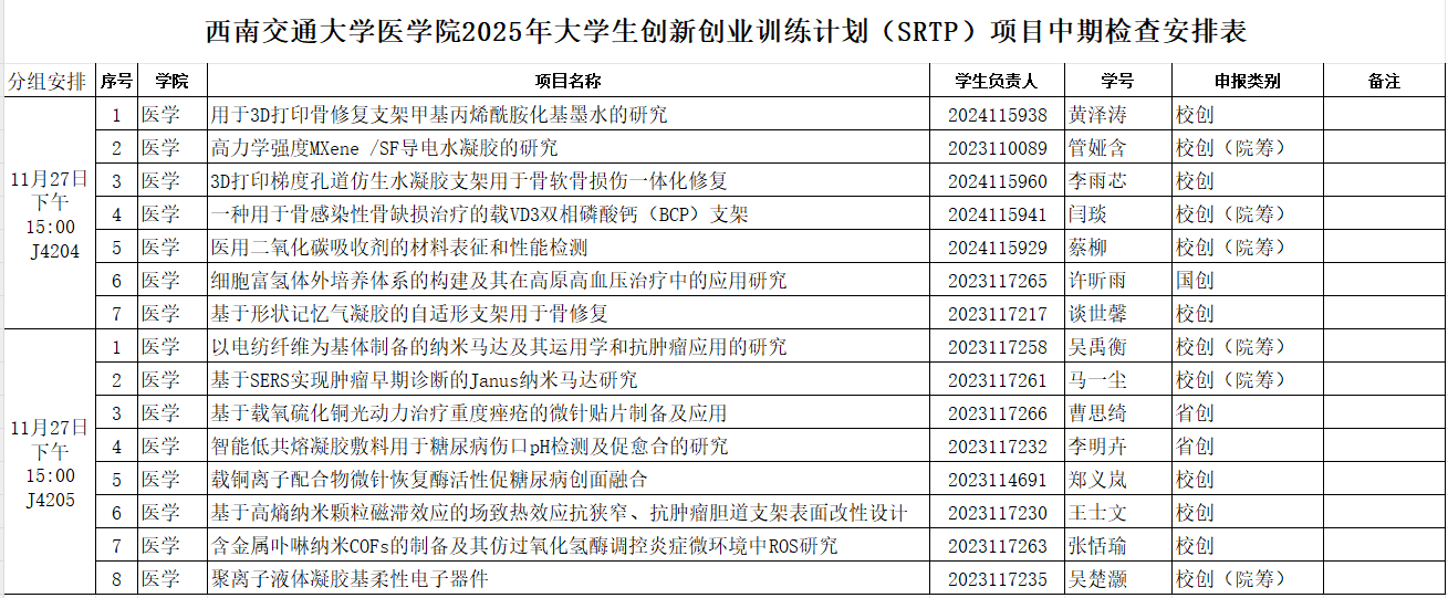 2025年大学生创新创业训练计划(SRTP)项目中期检查安排表》(图1)。