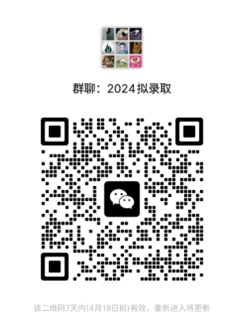 为做好拟录取考生的咨询答疑,以及接下来的导师双选工作、邮寄通知书等工作,学院已建好拟录取微信群,请各位拟录取考生凭“24专业-姓名”申请加群。