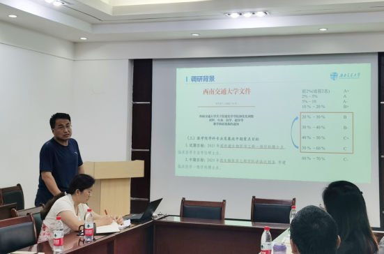 院长助理苟雪介绍了《落实立德树人根本任务,多瑙影院 生物医学工程人才培养存在的问题与改进措施》调研课题,详细分析了生物医学工程专业本科课程设置、学科定位等调研结果,并在调研基础上形成了新的生物医学工程本科专业培养方案。