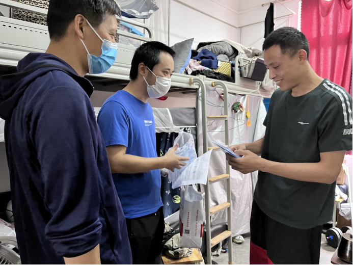 党委书记李锦红亲切与同学们进行交谈,深入了解静态管理期间同学们学习和生活情况,包括生活物资是否充足、就餐有无困难,以及当前因疫情防控要求暂停外出实验对科研进度的影响等,充分了解学生诉求,收集学生意见以全力保障同学们的正常生活。此外,李书记也给同学们加油打气,安慰同学们疫情只是短暂的,切勿产生负面消极情绪,要积极调整心态,放松心情,多与同学或老师交流,只要大家同心抗“疫”,共克时艰,严格遵守防疫政策,理解与支持学校防疫工作,疫情终将过去,很快将迎来“抗疫”胜利的曙光!