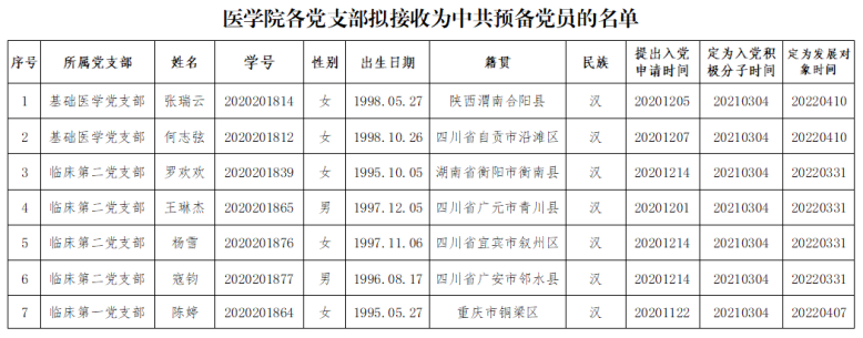 经学院各学生党支部委员会讨论确定发展对象、学院党委备案、发展对象培训及政审、学院党委预审等,拟于近期讨论接收何志弦等7名同志为预备党员,现将有关情况进行公示(见附件表格)。