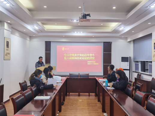 204会议室召开政治学习会议。主要学习内容是《中共中央关于党的百年奋斗重大成就和历史决议》第五、六部分内容,暨“中国共产党百年奋斗的历史意义”和“中国共产党百年奋斗的历史经验”。会议由杨众贺同志进行领学,党支部全体党员参会。