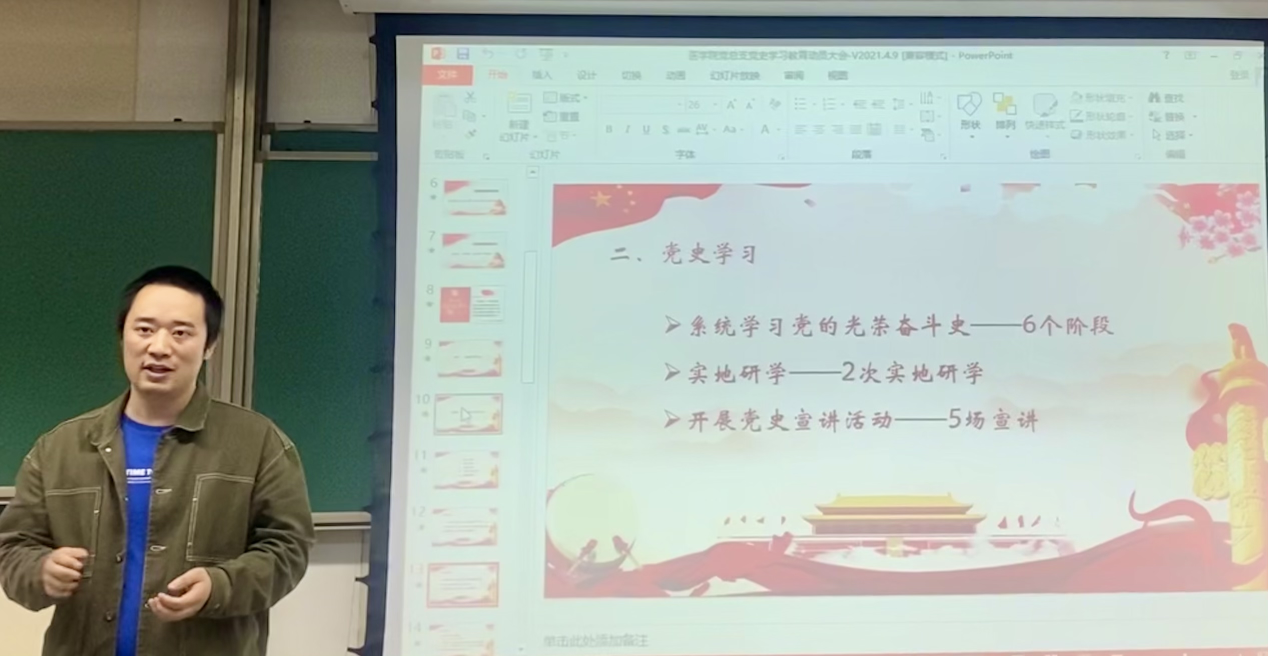 党总支在逸夫馆J4518召开党史学习动员大会,党总支书记李锦红、多瑙影院