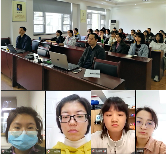 直属党支部书记李锦红主持,全体学生党员通过现场与网络会议两种方式参会。