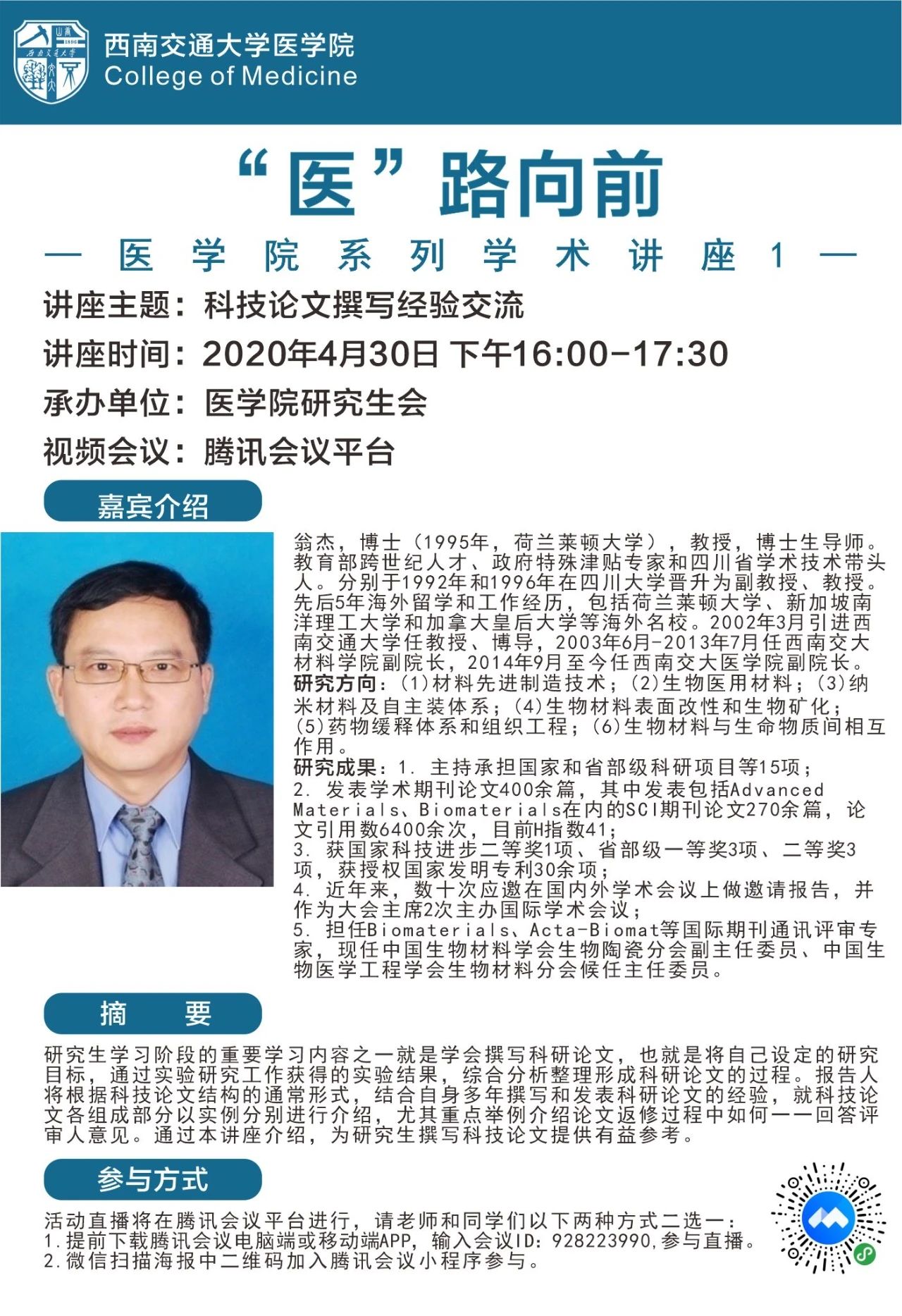 讲座时间:2020年4月30日 下午16:00-17:30